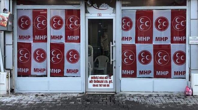 Zafer caddesindeki bir işyerini Seçim İrtibat Bürosu olarak düzenleyen Milliyetçi Hareket Partisi ilçe teşkilatı mahalli seçimlerin koordinasyon çalışmalarını bu merkezden yürütecek.